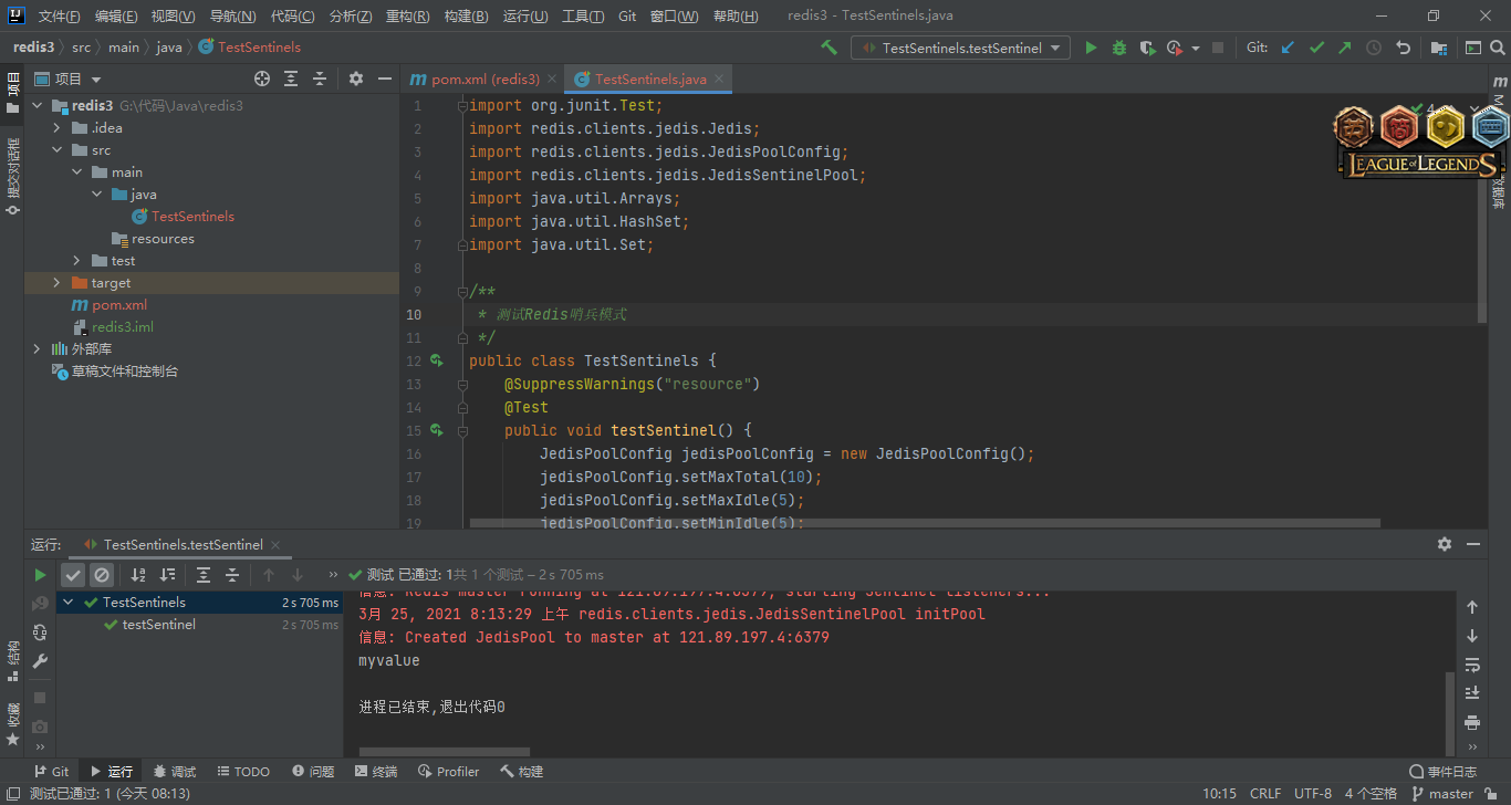 JedisSentinelPool pool = new JedisSentinelPool("mymaster", sentinels,jedisPoolConfig,"123");
