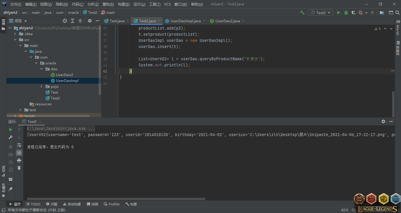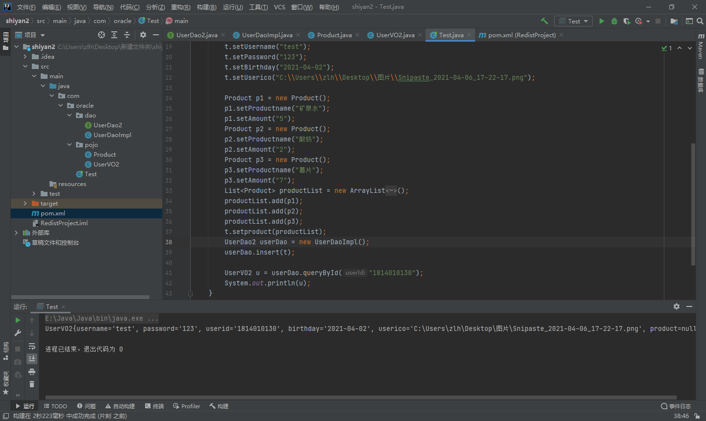 List<UserVO2> l = userDao.queryByProductName("矿泉水");