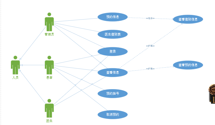 b.医生通过系统可以查询自己的值班信息、求医病人的预约信息及病人的详细信息.