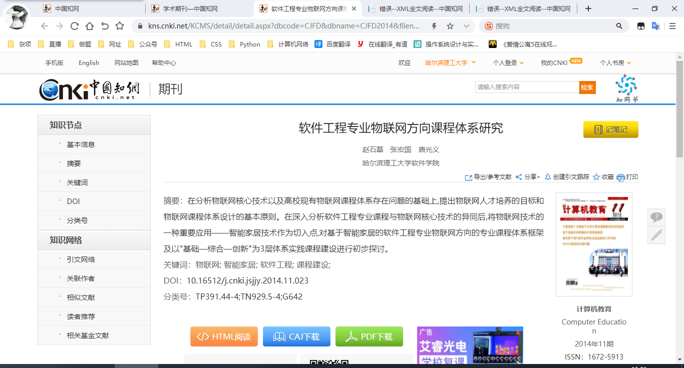 1、在中国知网CNKI“学术期刊”子库里检索:哈尔滨理工大学(模糊)and 张宏国(精确)老师发表的期刊论文,共有 61 条结果,按“相关度”排序,写出与你学号相同的那篇论文的以下信息: