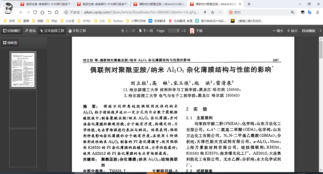 论文题目: 偶联剂对聚酰亚胺/纳米Al2O3杂化薄膜结构与性能的影响