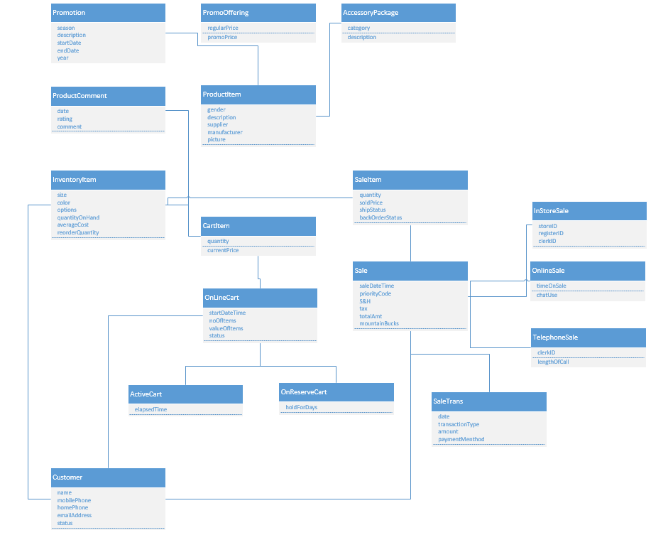 - 运用用例 、参与者和其他系统信息 (包插输入 /输出) 来确定所有名词 。对于 RMO 的 CSMS 系统来说 ,名词包括 :顾客 、产品目录 、销售 、证明 、交易 、运送 、银行、改变 请求 、总结报告 、管理、业务报告 、会计 、延期订单 、延期通知单 、退货 、退货确认 、确认 反馈 、潜在顾客 、市场营销 、顾客账户 、促销手段 、收费调整 、销售细节 、销售规划以及顾 客活动的报告 。