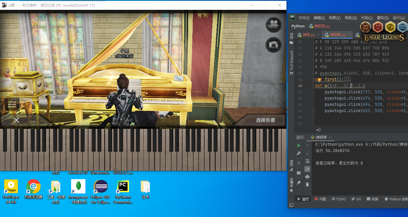 还是明日之后那个游戏,88键的钢琴键子太小太难点了,还想弹怎么办,突发奇想能不能搞一个鼠标位置控制点击的代码玩玩。