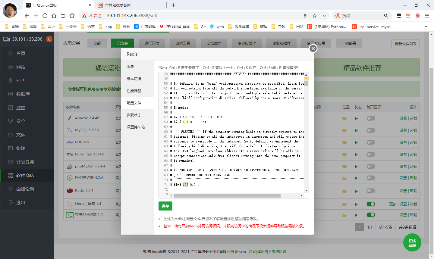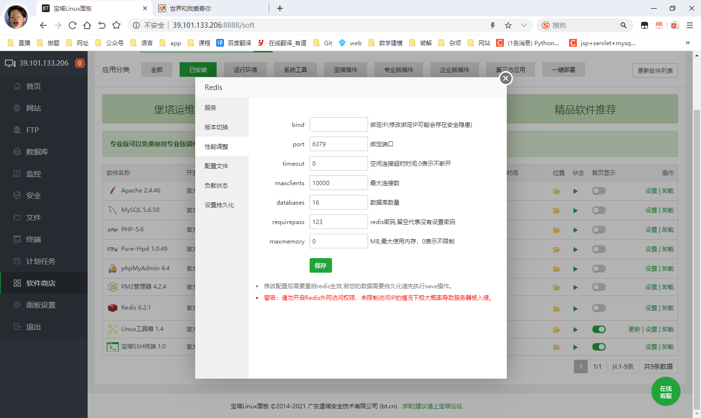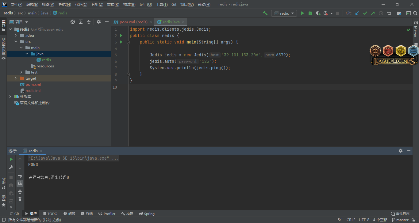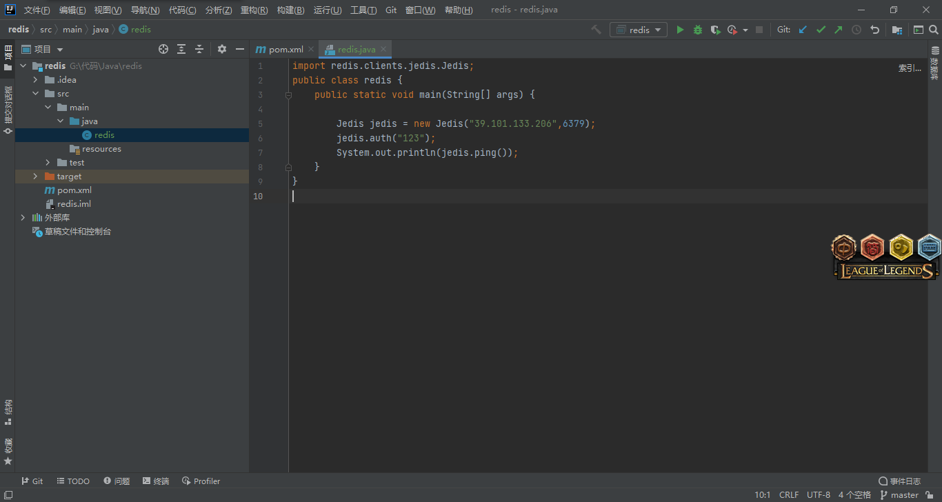 Jedis jedis = new Jedis("39.101.133.206",6379);