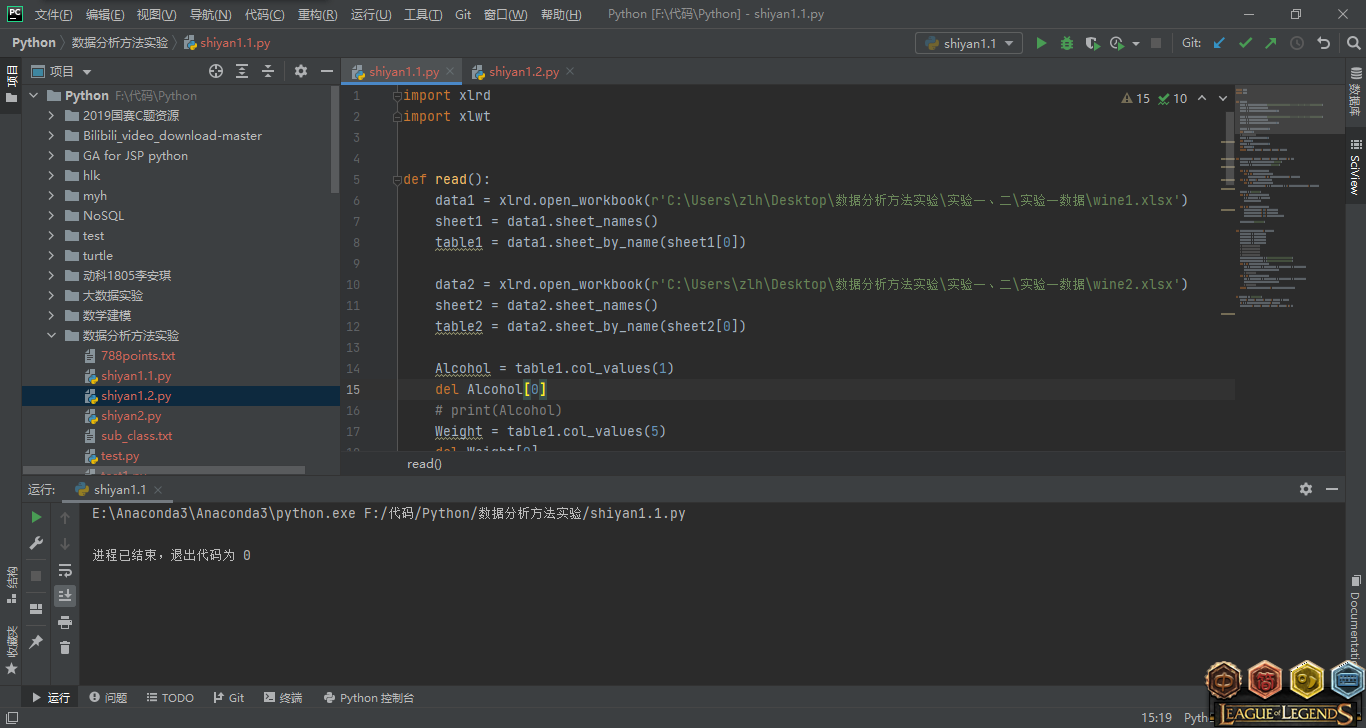 data2 = xlrd.open_workbook(r'C:\Users\zlh\Desktop\数据分析方法实验\实验一、二\实验一数据\wine2.xlsx')