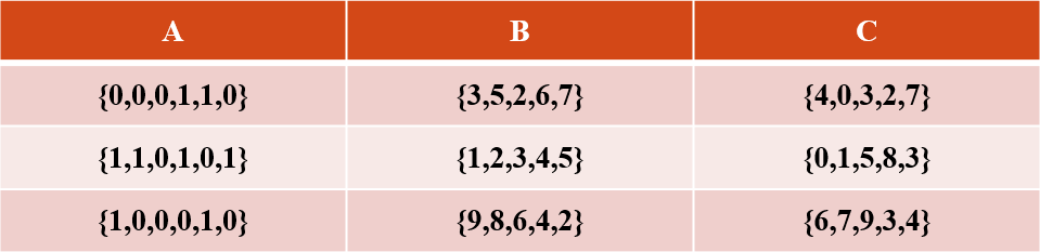 创建数据集,数据集中包含10个数据对象,每个数据对象由一个二值型属性和两个五维向量组成,如下所示