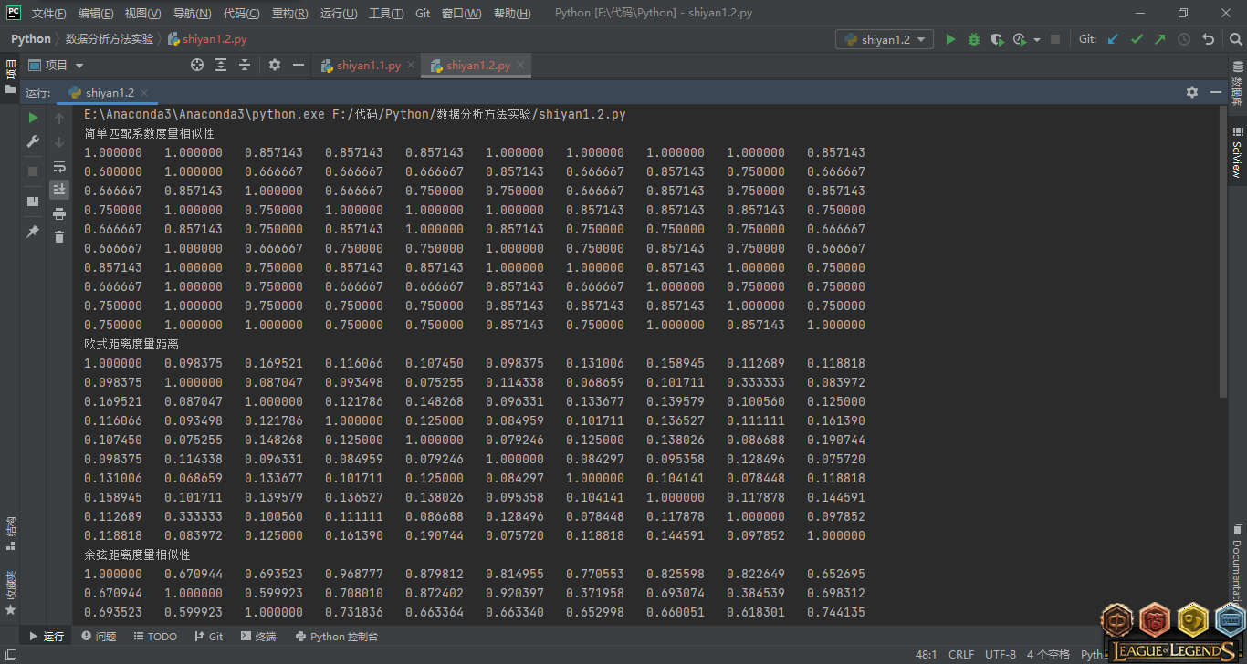 计算不同数据对象间相似性,以矩阵形式输出计算结果
